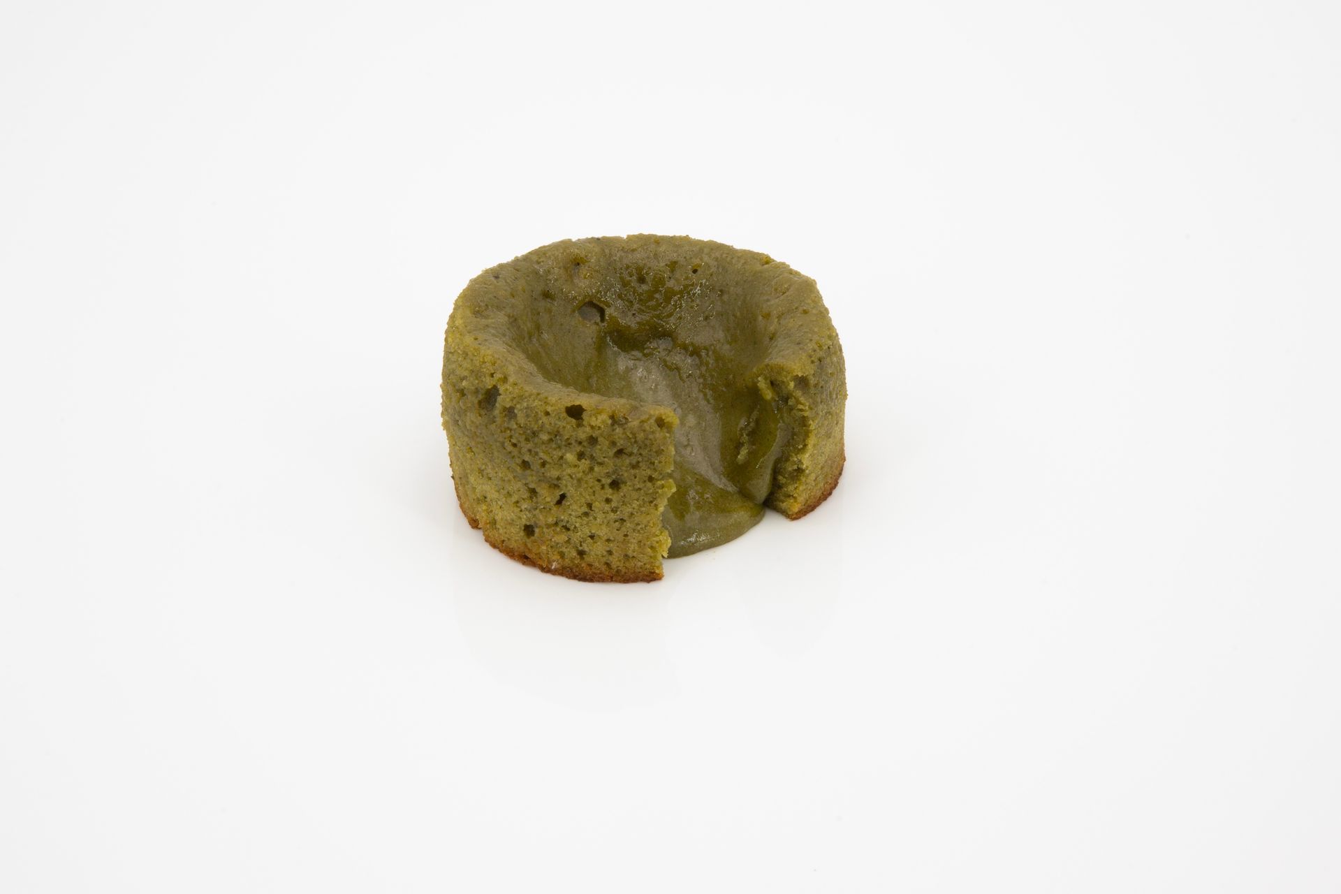Bizcocho de té matcha con crema de té matcha en su interior.