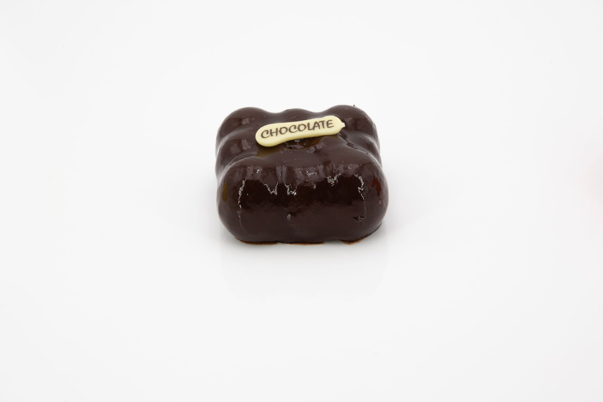 Nube con base de bizcocho relleno de mousse de chocolate, con un baño de gelatina.