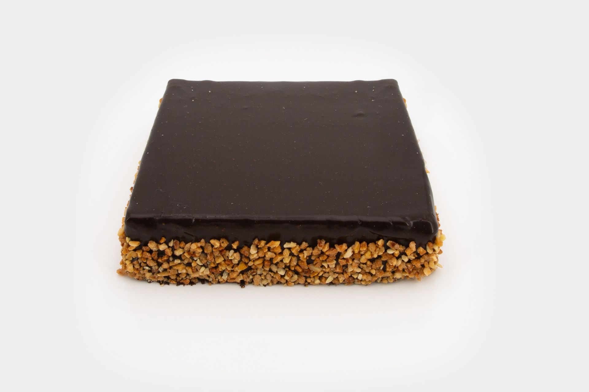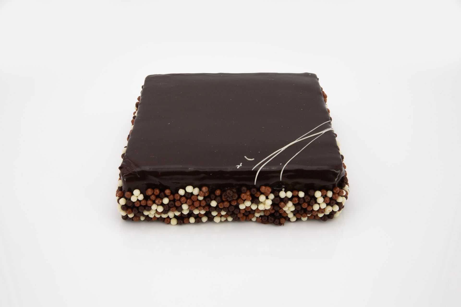 Bizcocho relleno de trufa cocida acabado con chocolate negro.